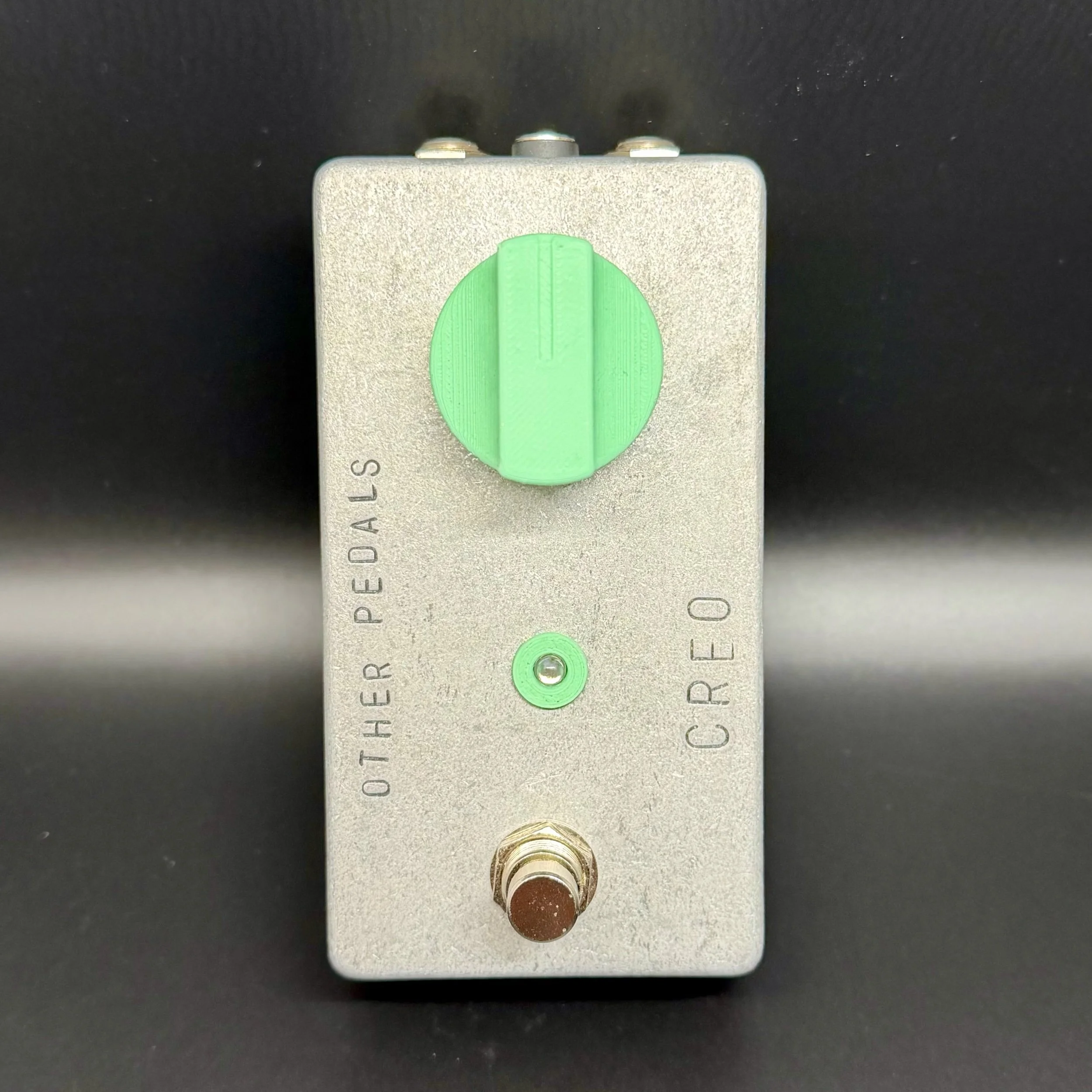 CREO is a clone of the classic Elektra Distortion but with asymmetrical LED/germanium diode clipping. Volume controlled by the single big knob.